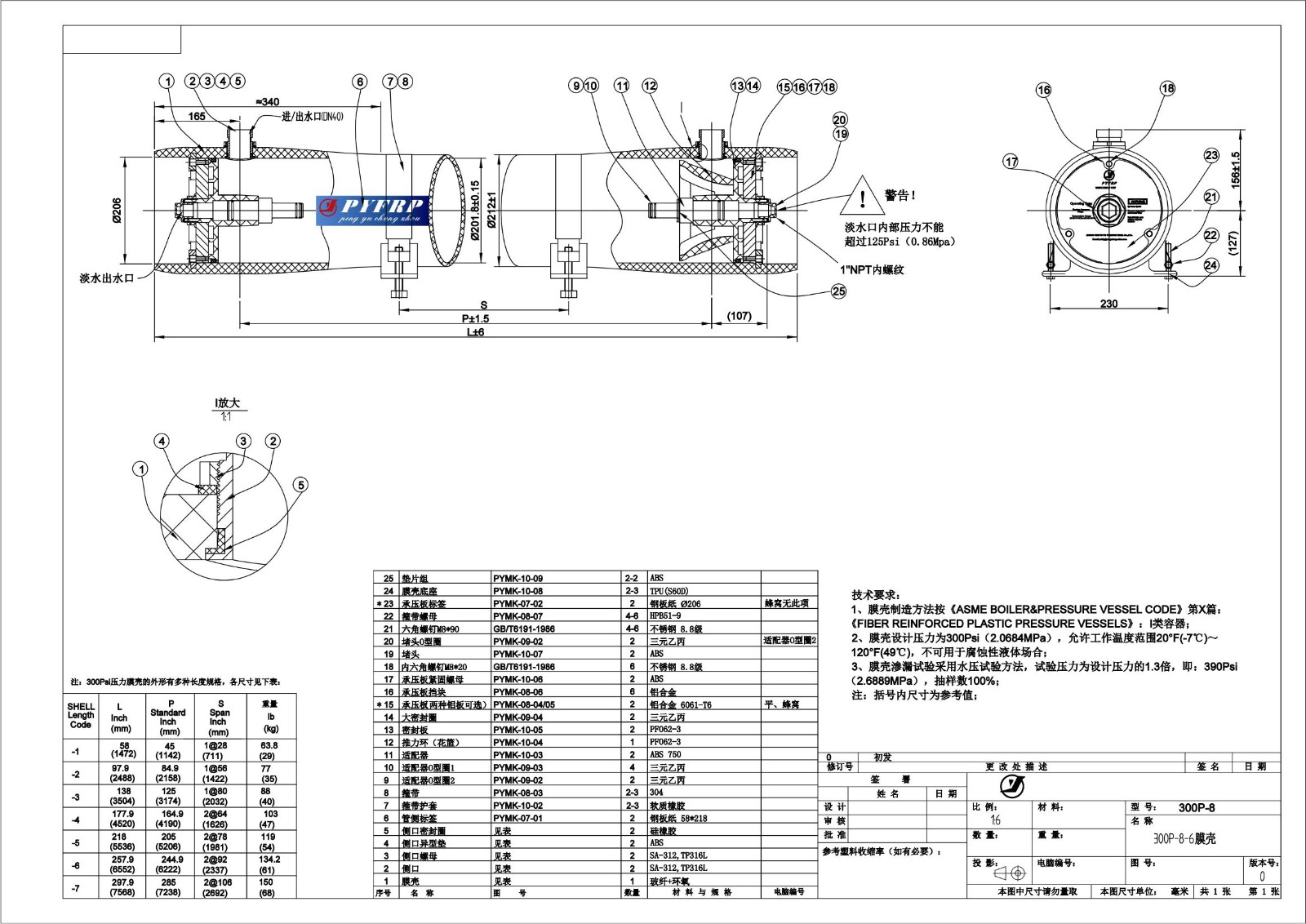 PYFRP反渗透膜壳工程图安装图纸设计图